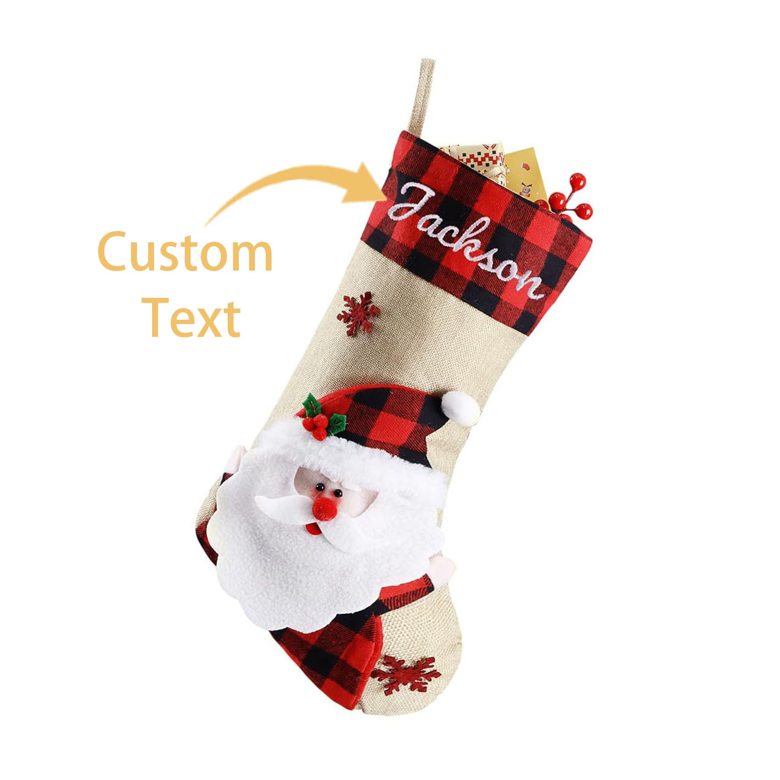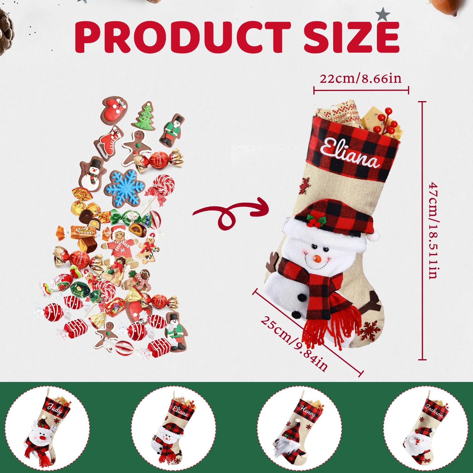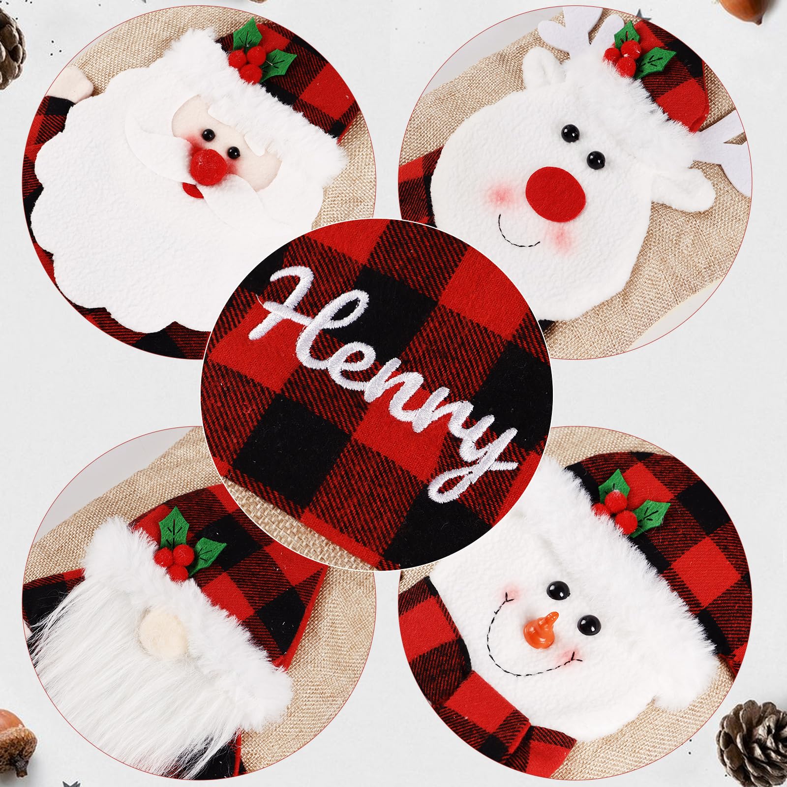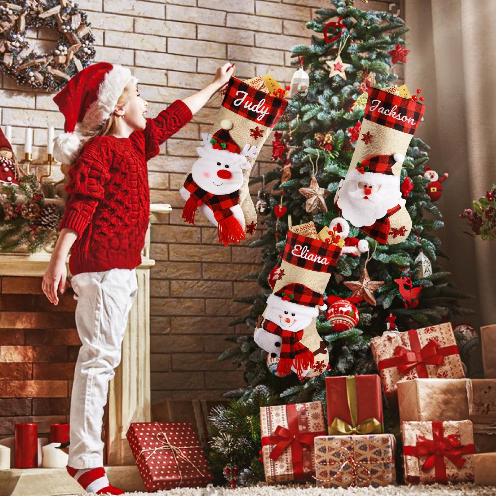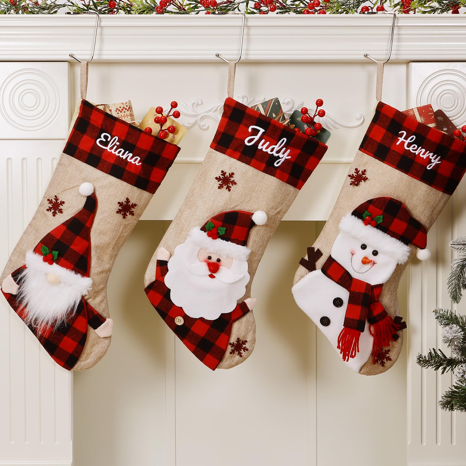 - ๐ High Quality Plaid & Embroidery ๐ Classic buffalo plaid design with 3D stereo Gnome, Deer,Santa, Snowman. Putting various goodies in them will not deform the christmas stocking.Your name will be embroidered, permanently stitched into the fabric for long-lasting beauty. 3.5" hanging loop can hanging the custom Christmas stockings on fireplace, Christmas trees, stairs, walls, door or bed to decor your home