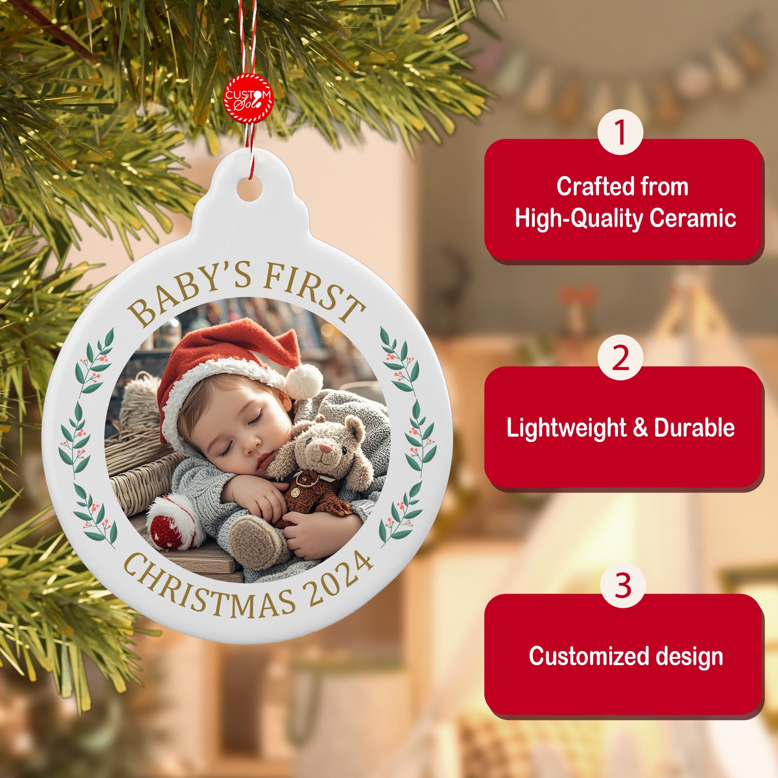 - 🎄Babys First Christmas Ornament🎄This ornament is a wonderful way to cherish and preserve the precious memories of your baby's first holiday season.Creating a touching decoration that celebrates the love and happiness your little bundle of joy brings to this festive season.Hang it at home and share the joy of your baby's first Christmas with your loved ones at Christmas.