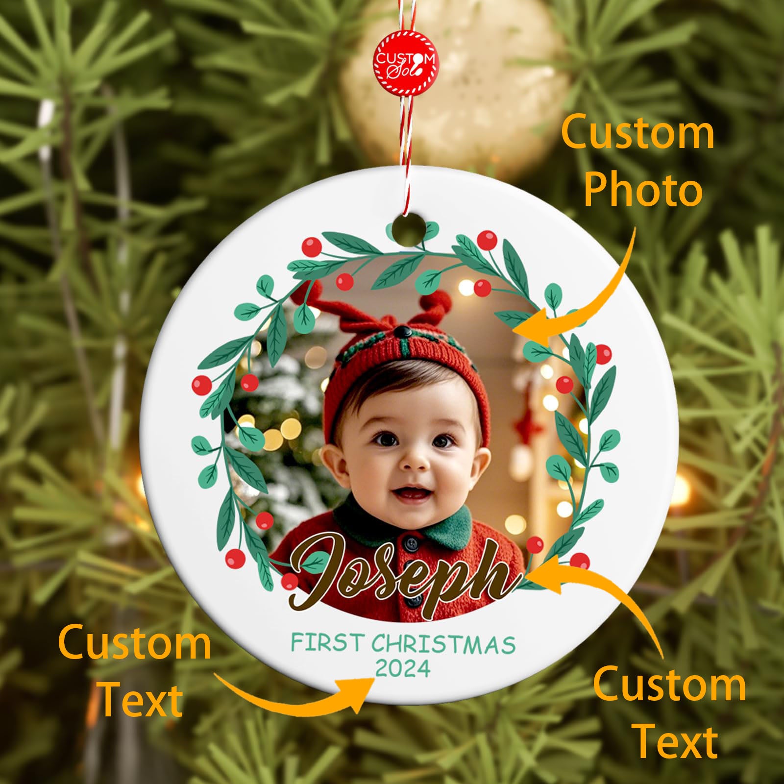 - 🎅High-Quality Materials🎅This ornament is made of high-quality porcelain material, and high-quality printing technology can make the customized information clearly presented on the product. We hope that this product can add some warmth to your Christmas and become a warm reminder of your baby's first Christmas in the next few years. Such precious moments are worth remembering.
