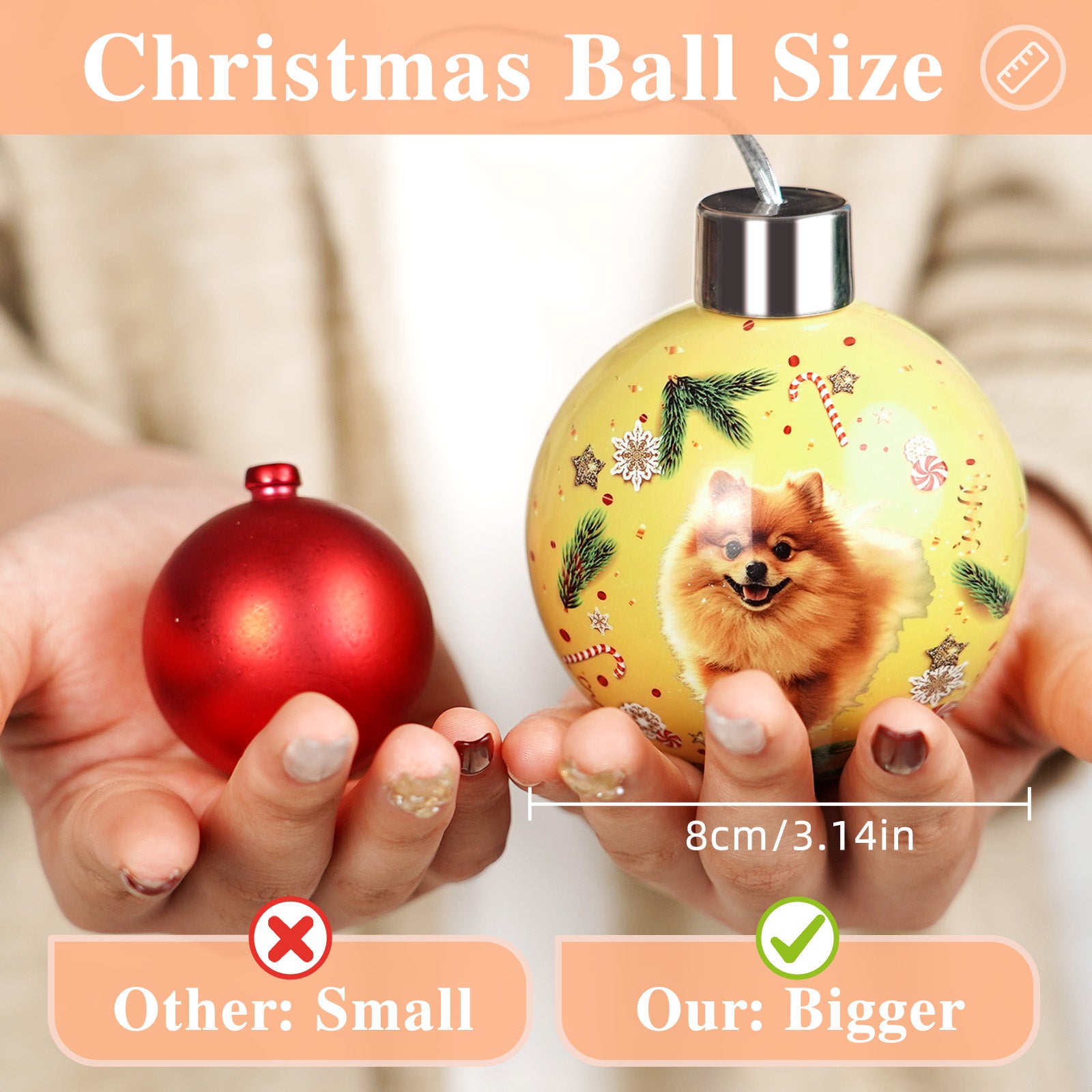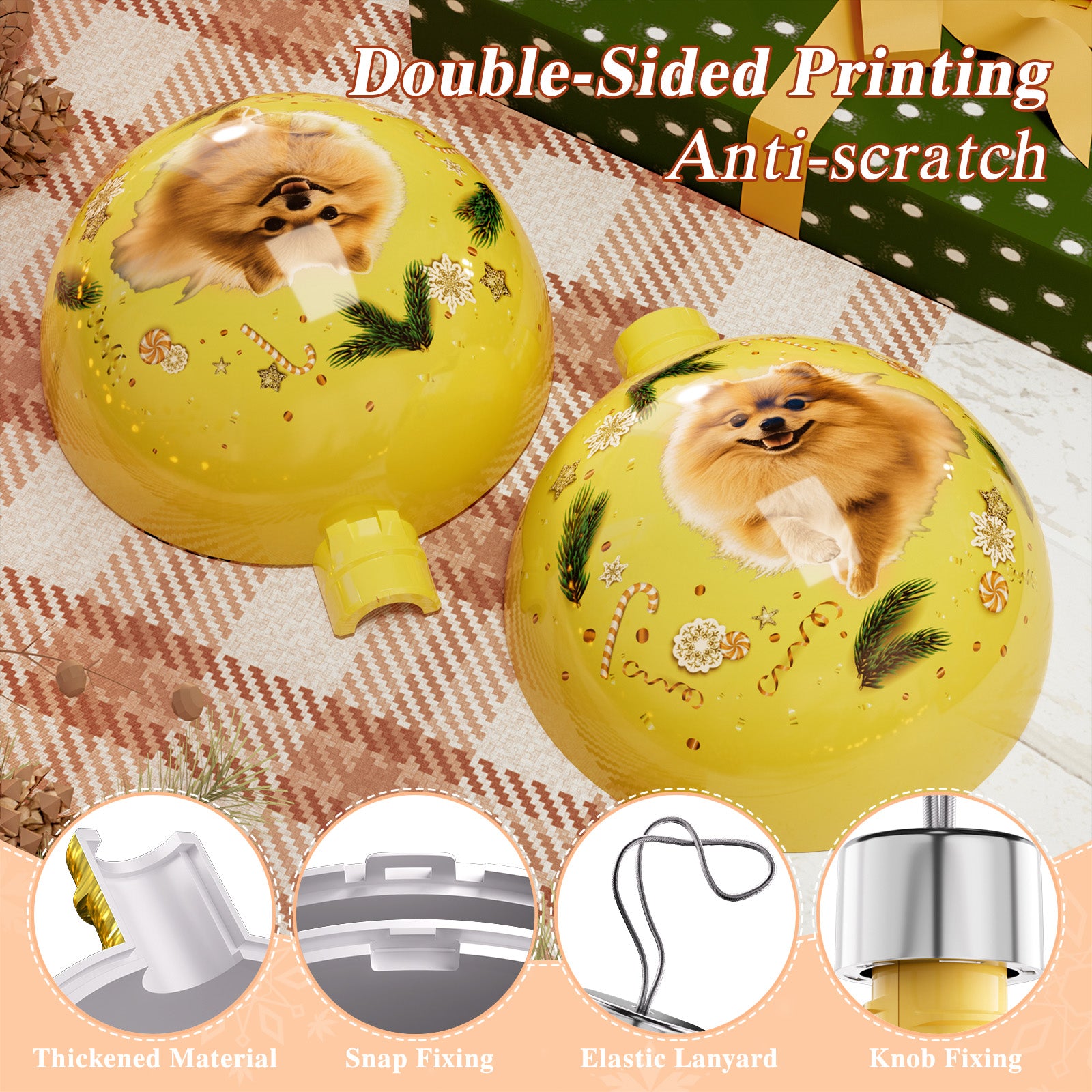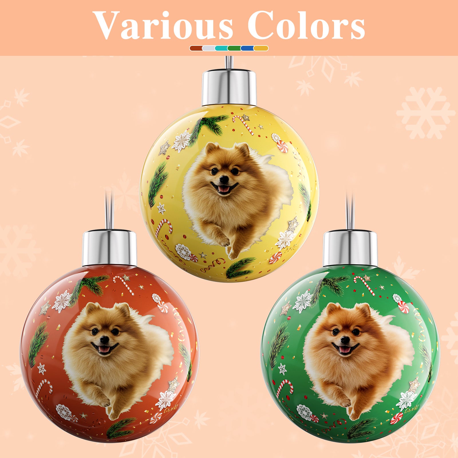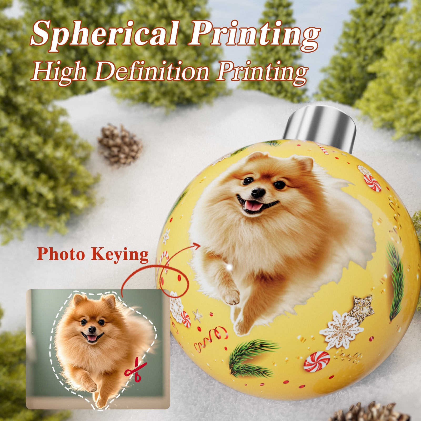 🎄 Custom Design: Upload your pet’s or loved one’s photo and create a unique Christmas ornament with high-definition spherical printing. Available in multiple color options with double-sided printing for maximum impact.