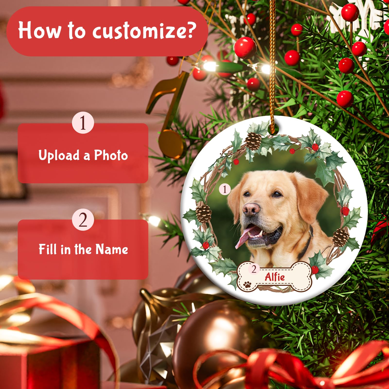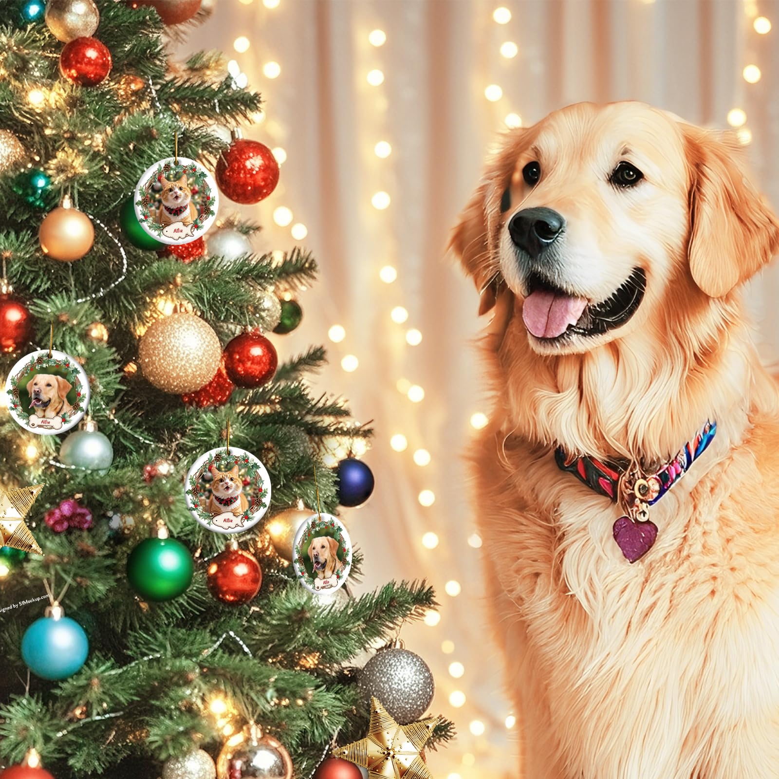 - 🎄【PET CHRISTMAS ORNAMENTS】Customize personalized Christmas ornaments 2024 for your cat, dog pet, express your best wishes to the whole pet and celebrate the joyful holidays together. Just clicking the "Customize Now" button, choose the personalized ornaments design, upload the picture and name, you will own a dog & cat ornaments for Christmas tree