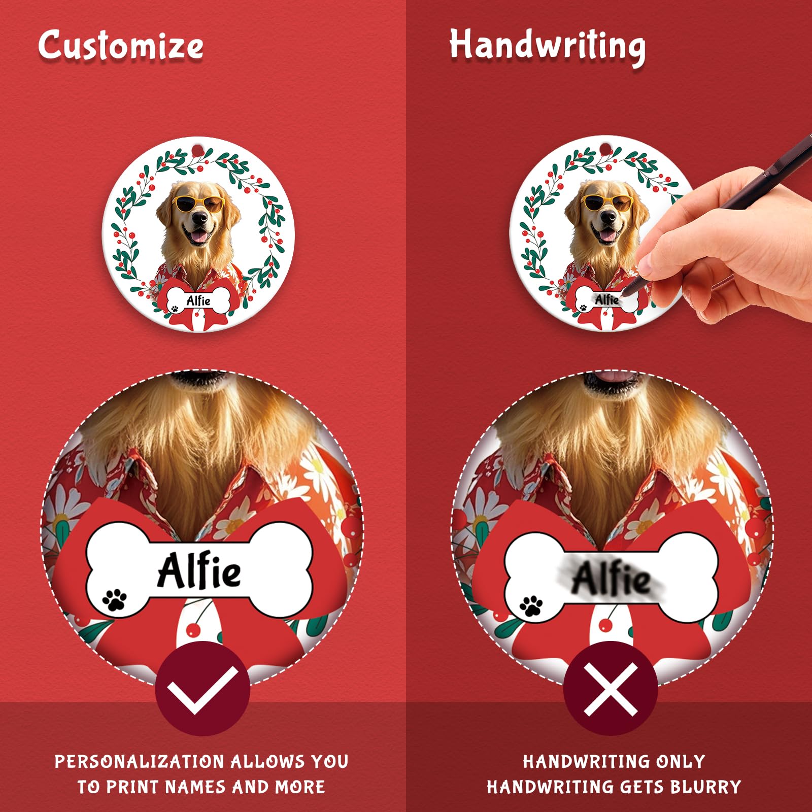 - 🎄【PET CHRISTMAS ORNAMENTS】Customize personalized Christmas ornaments 2024 for your cat, dog pet, express your best wishes to the whole pet and celebrate the joyful holidays together. Just clicking the "Customize Now" button, choose the personalized ornaments design, upload the picture and name, you will own a dog & cat ornaments for Christmas tree