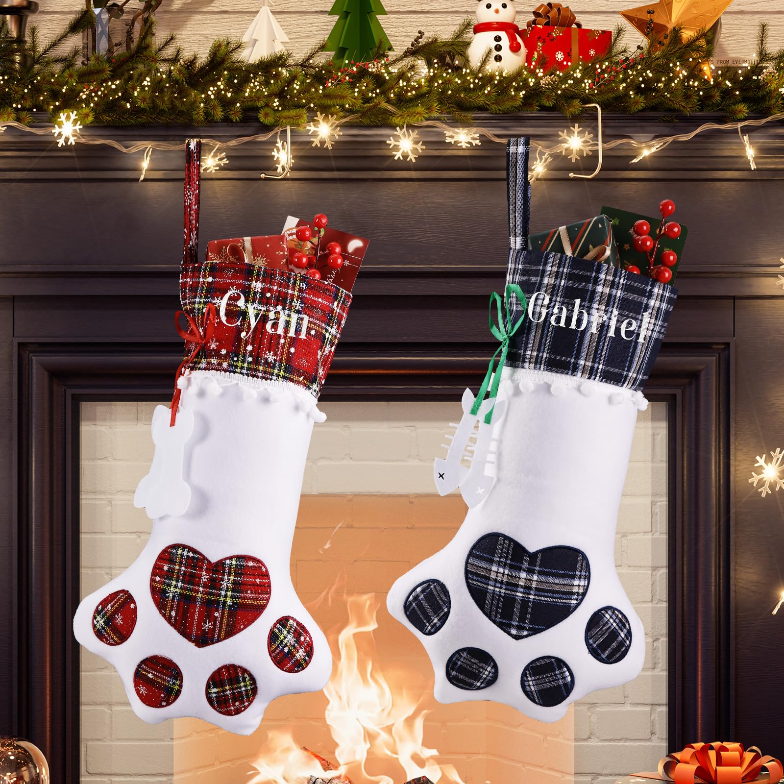 - 🎄🎄【Cute Designs in Different Styles】: These personalized Christmas stockings are designed in the shape of dog bones, pet paws and fish, prepare a meaningful Christmas souvenir for your pet. Pet Christmas stockings look very cute and come with different pendant decorations. Customized names also come in different positions, which you can choose according to your needs.