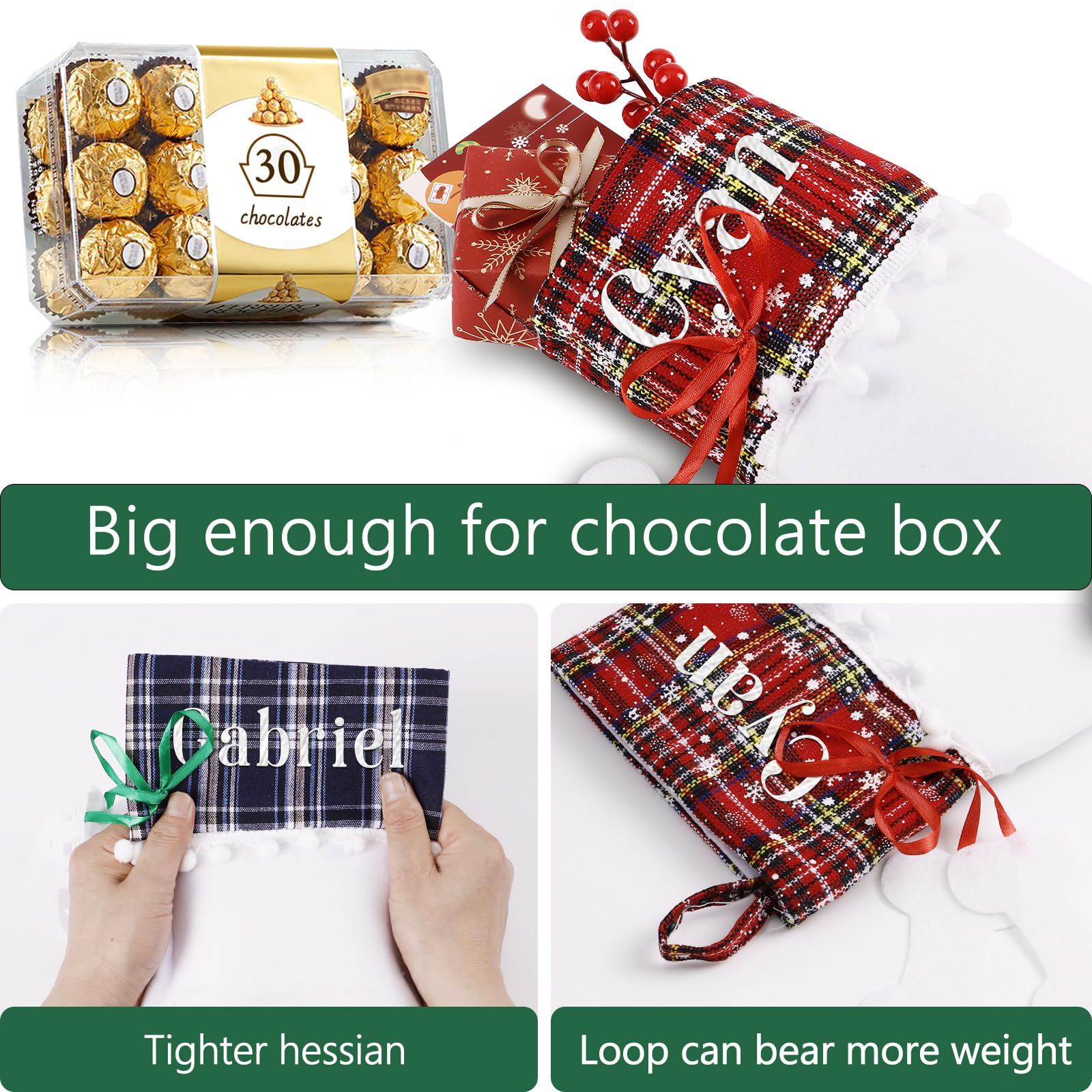 - 🎅🎅【High-quality Material Embroidery Process】Different designs are made of different materials, which can be roughly divided into two categories, velvet and linen. The customized parts are hand-embroidered. Different from machine printing, hand-embroidered ones are stronger and more beautiful. Every pet Christmas The socks are filled with the blessings of the workers for you. I hope this Christmas stocking can stay with you for a long time.