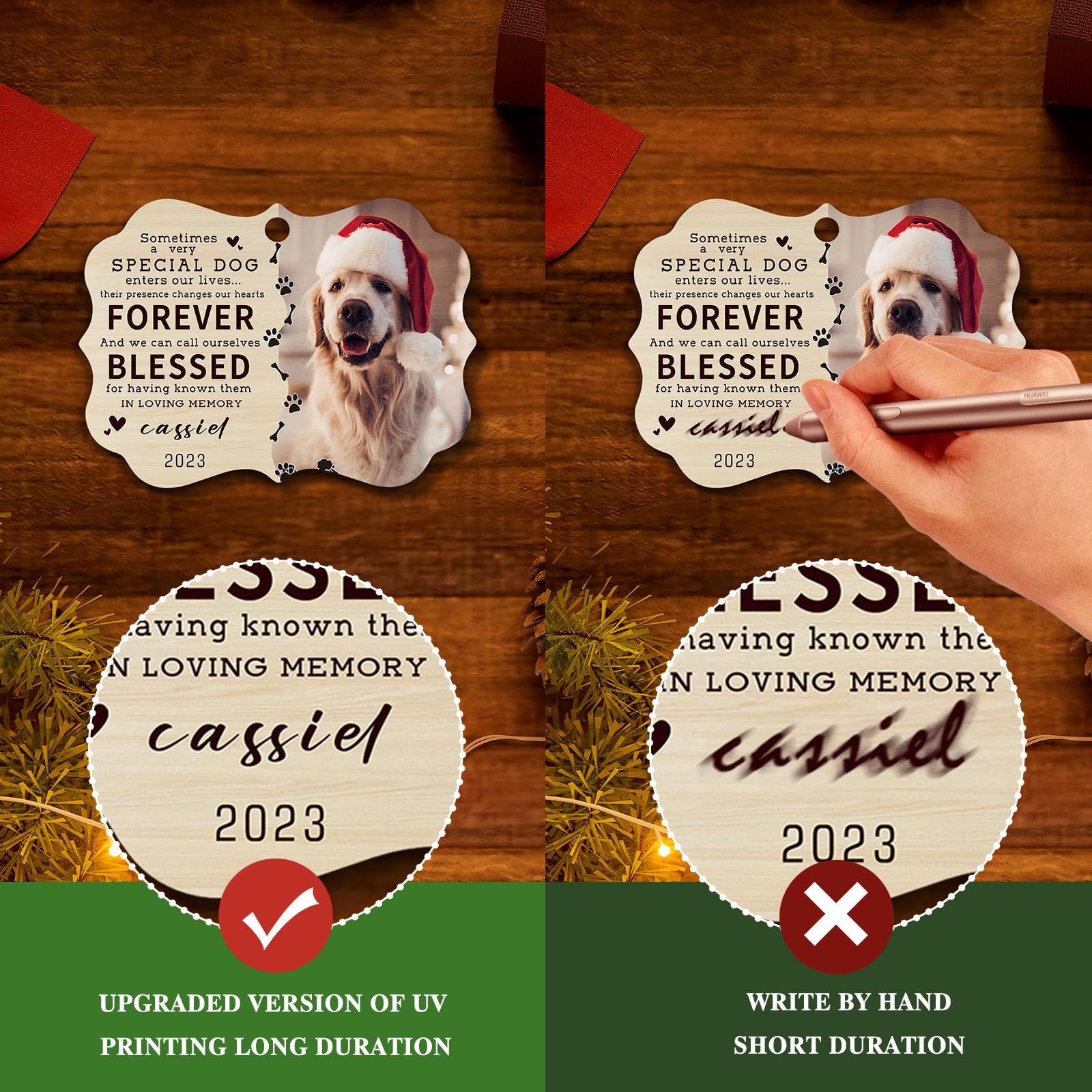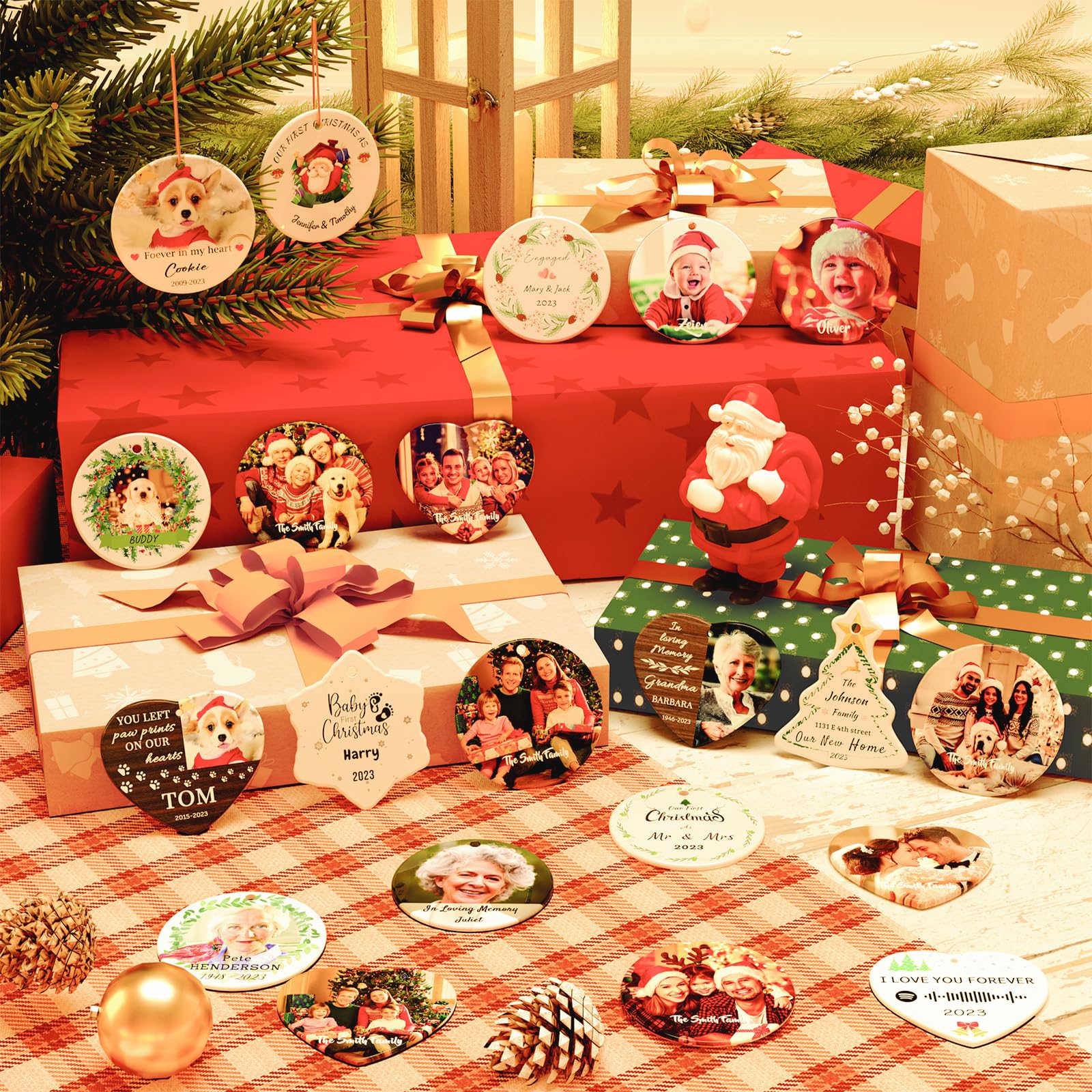 - 🐾HIGH QUALITY AlUMINUM- The custom ornament is made of high-quality aluminum, which is about 3", and easy to carry or give gift. Different from the wooden ornaments, its printing is clearer and looks more high-end. Feature bright, high-definition printing to keep your pictures from fading. This custom photo christmas ornament can be kept for a long time to remember your unforgettable Christmas forever.