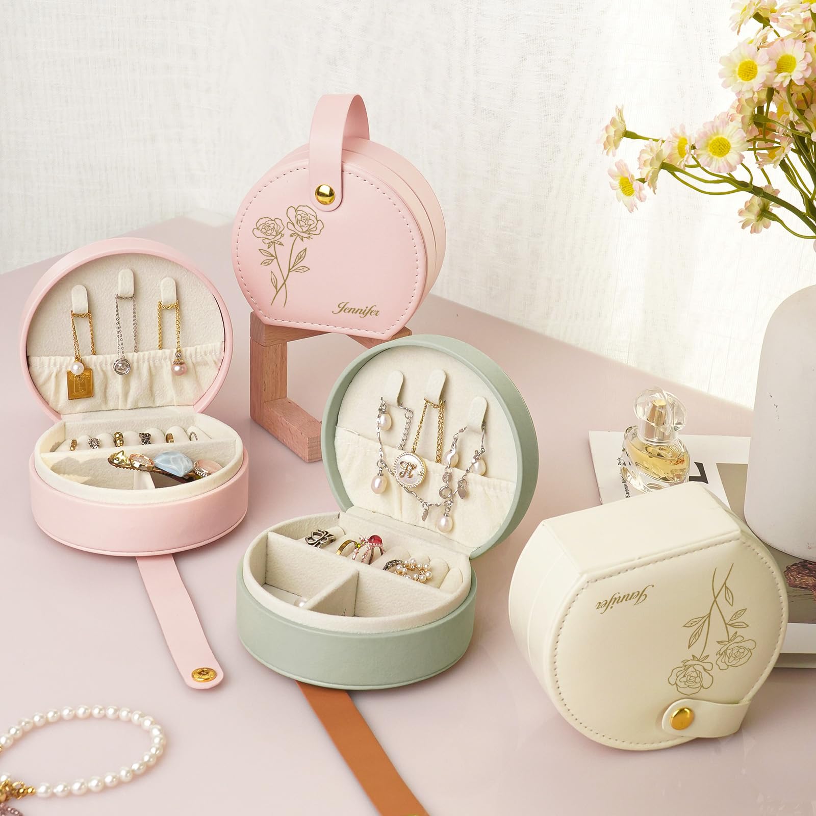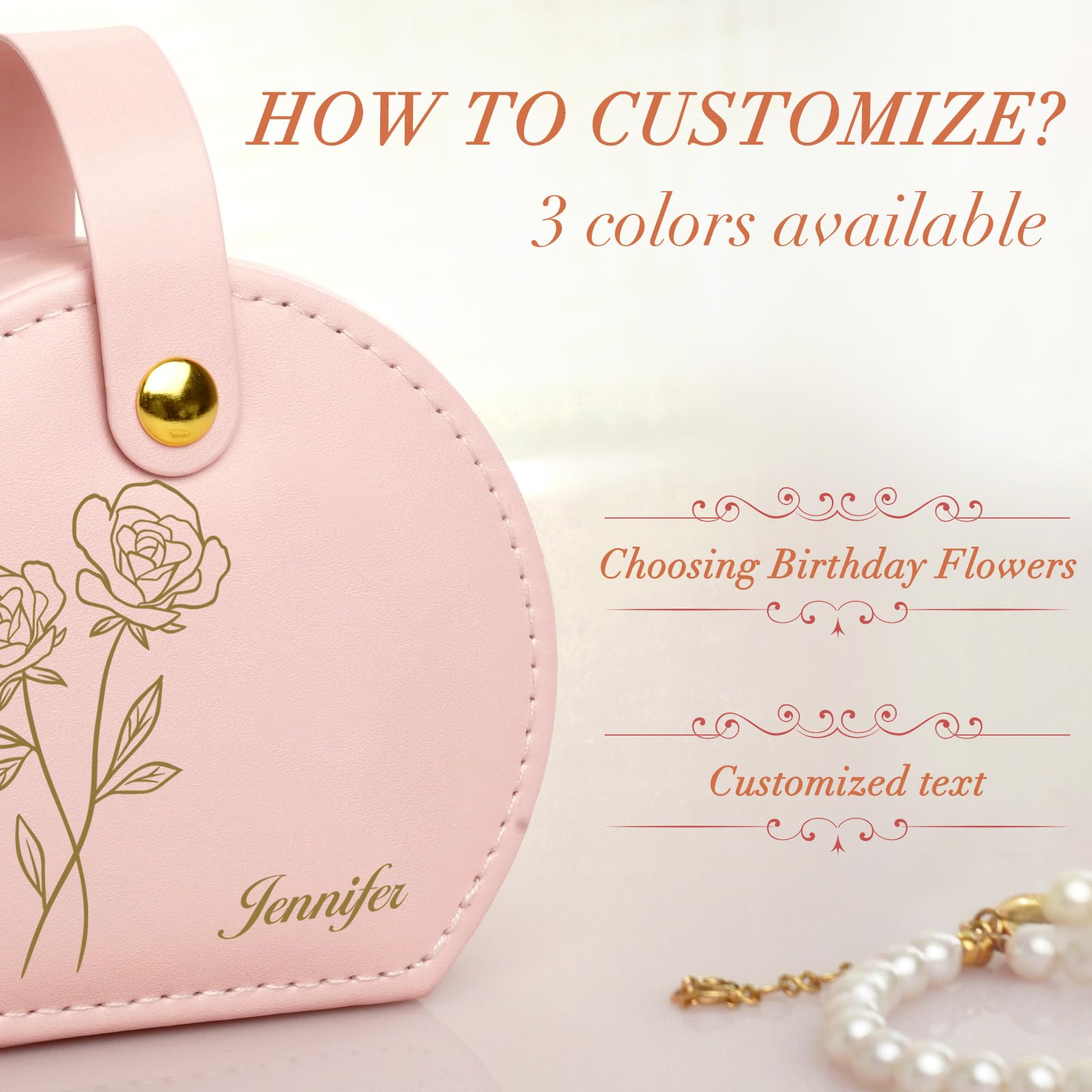 - 🌹 BIRTH FLOWER MONTH🌹Custom jewelry box, you will have the opportunity to personalize the jewelry box with a birth flower month of your choice. In addition, you can submit the name of your beloved one to turn the box into a chic and stylish gift for her special day.