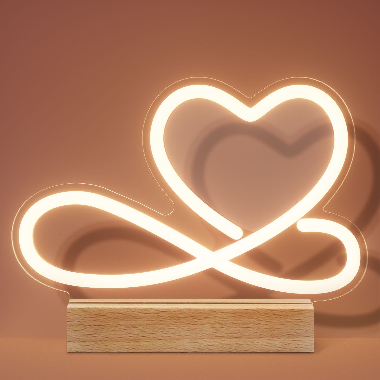- Neon Light 💗 The ordinary night light is emitted by the base rather than its acrylic plaque itself, while the neon light is emitted by the neon tube around the plaque. Warm white light, bright but not dazzling, no noise and energy saving. The brightness can be adjusted, whether it is night lighting or sleeping, you can adjust the light and dark as needed, which will create a warm and relaxed atmosphere