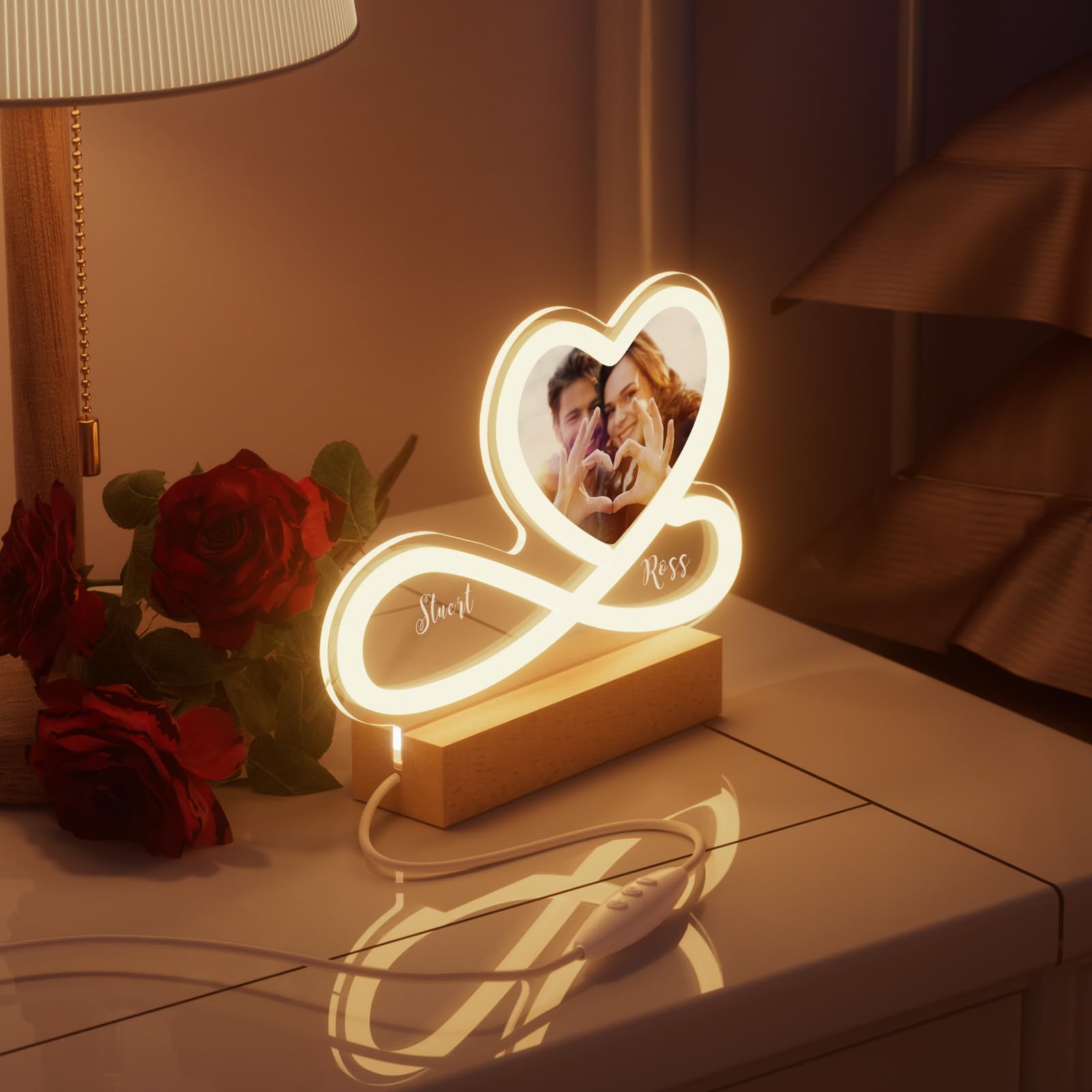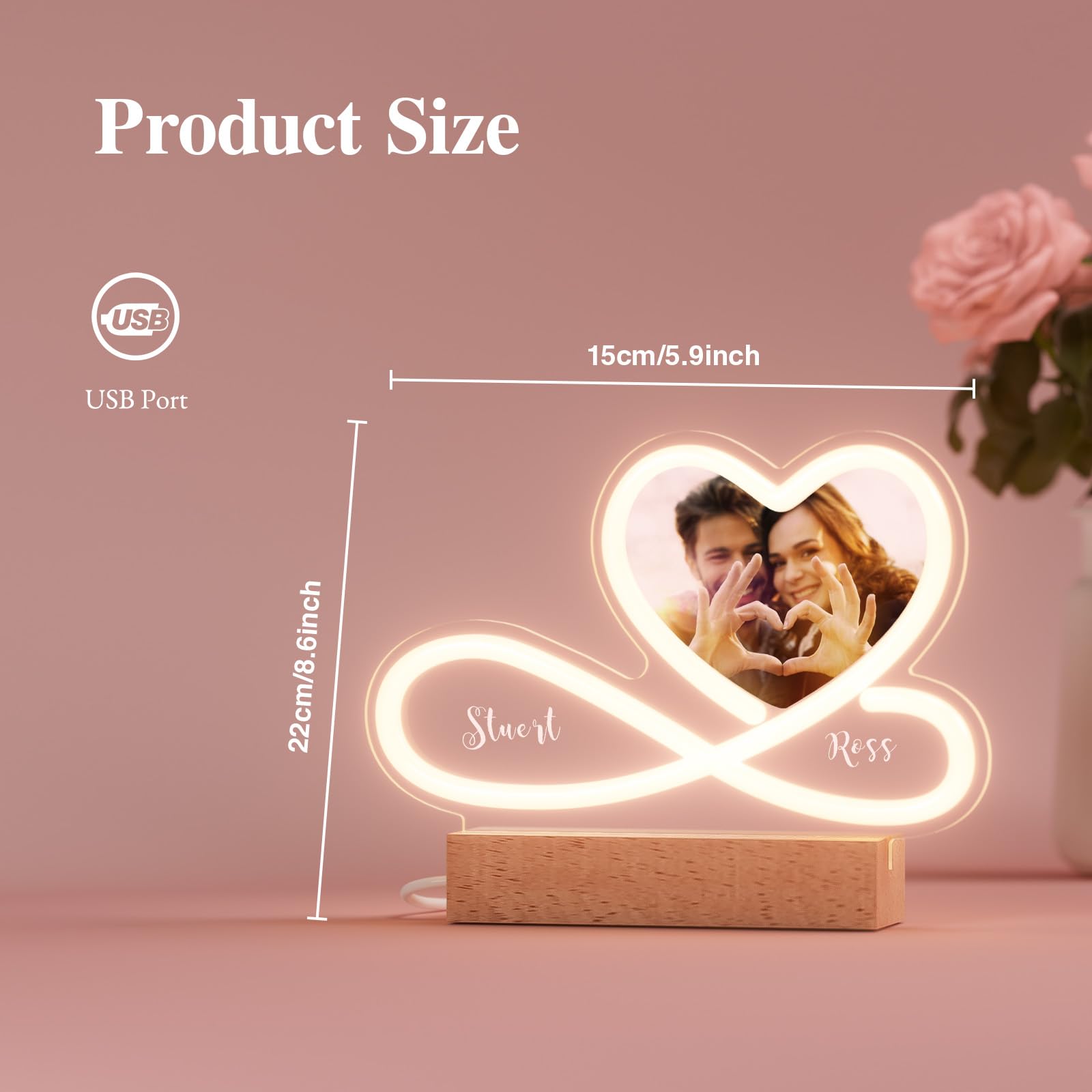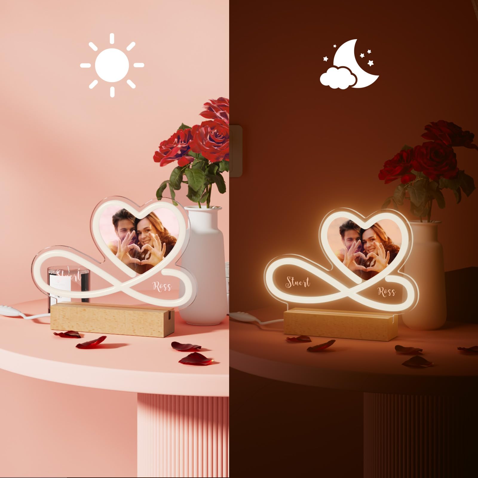 - Unique Home Decor 💗 This personalized photo gift is exquisite, compact and unique in style. During the day, it is a personalized photo frame, perfect for your home, bedroom, living room, baby room, bars, cafés, clubs, etc. Always attract everyone's attention. At night, it is a warm personalized neon light to bring you a sense of security in the dark