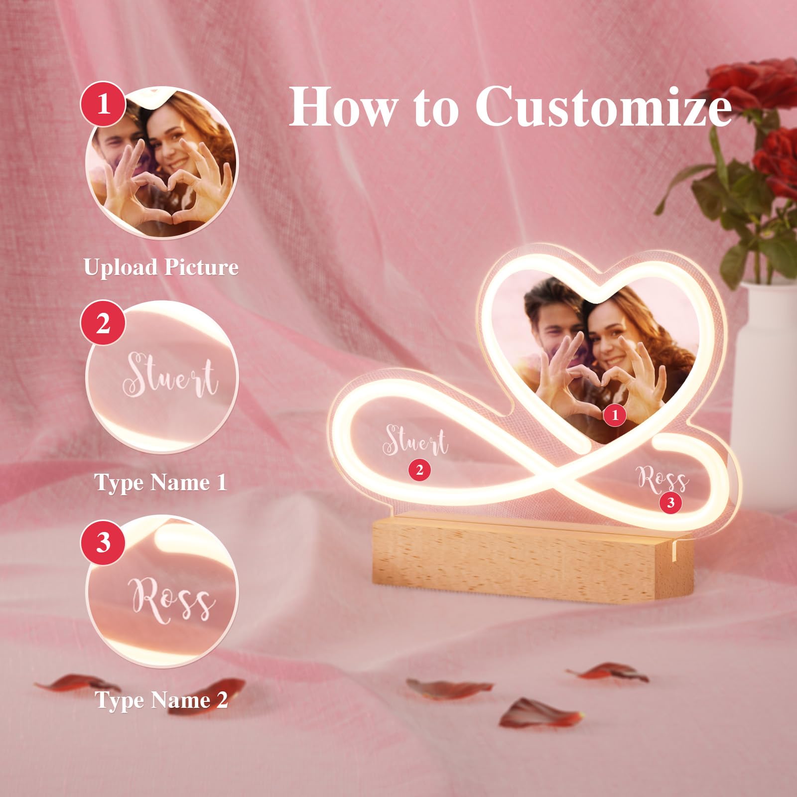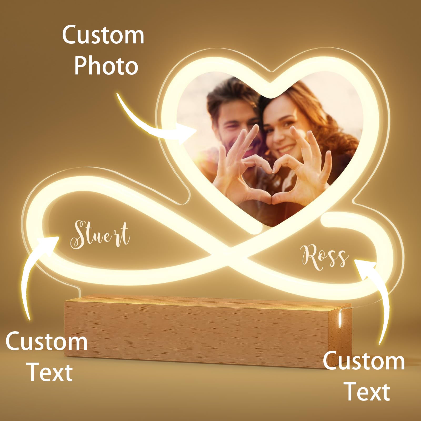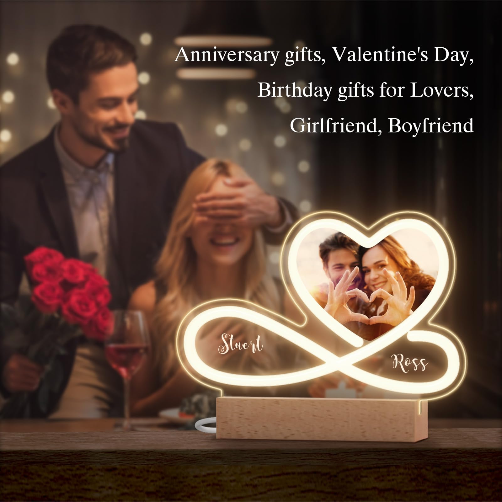 - Unique Home Decor 💗 This personalized photo gift is exquisite, compact and unique in style. During the day, it is a personalized photo frame, perfect for your home, bedroom, living room, baby room, bars, cafés, clubs, etc. Always attract everyone's attention. At night, it is a warm personalized neon light to bring you a sense of security in the dark