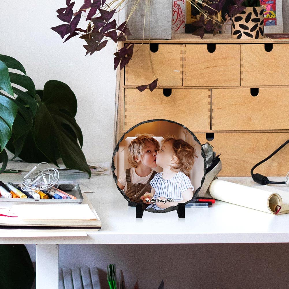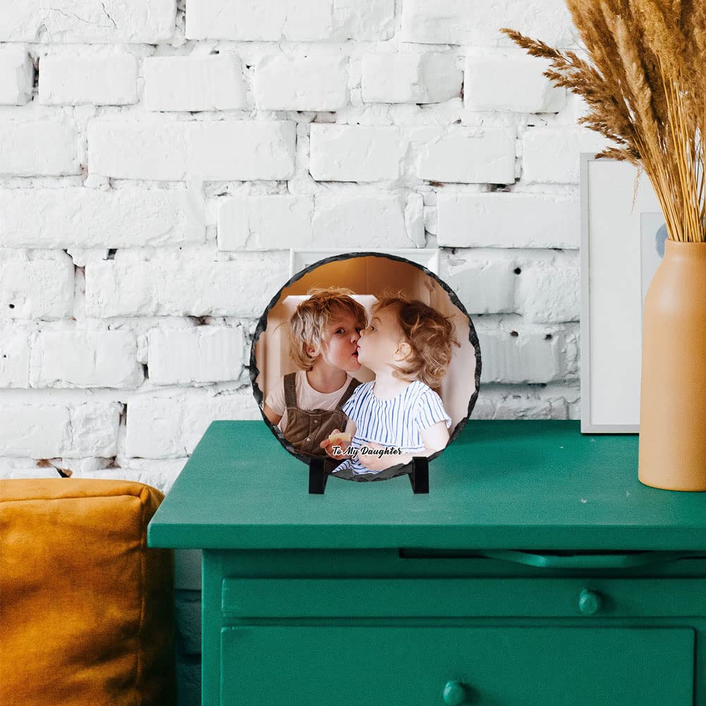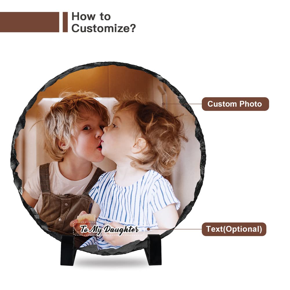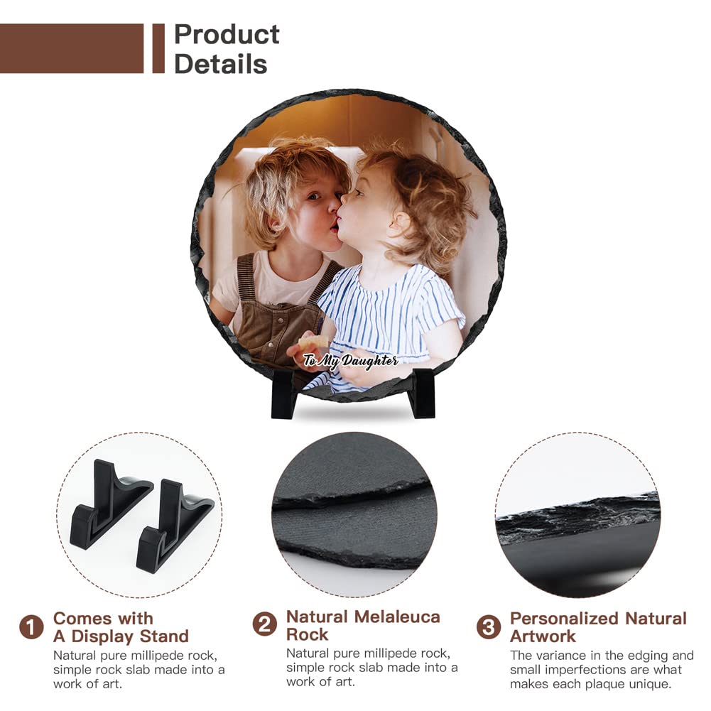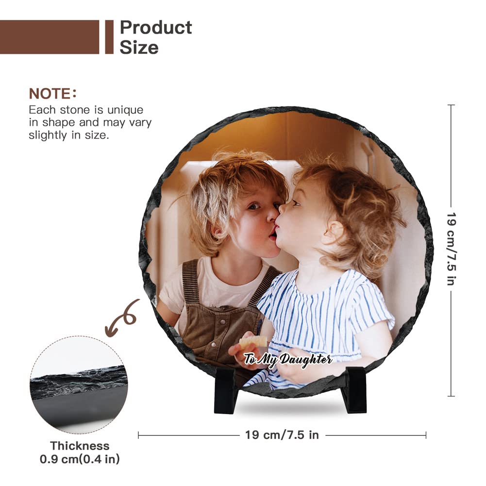 - CUSTOM PHOTO FRAME - Different from ordinary photo frames, you can customize your own photos and cute text based on your needs. This custom stone palque is designed meticulously and hand-polished with natural stone, so each with slightly different edges that makes the slate frame unique and special. It is meaningful and creative for your loved one.